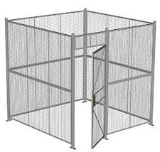 Wire mesh security partitions prevent pilferage, enclose work areas, and create customized, accessible security areas in warehouses, manufacturing facilities, distribution centers, tool cribs, and other work areas. They give you control of who has access to valuable inventory. Enclosures install anywhere needed using four wire panel walls to enclose area. Hardware is inaccessible from the exterior, and can't be easily disassembled from outside the cage. Panels are constructed of 10 gauge wire welded into high-strength 2" x 2" center to center square mesh and secured to a 1-1/4" x 1-1/4" steel 13 gauge roll form angle frame on all four sides for complete security. Create continuous rows of cages with this design. Installation is fast because the design uses a minimum of parts. Doors include cylinder key locks, other lock options are available.