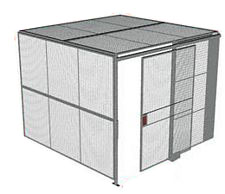 Wire mesh security partitions prevent pilferage, enclose work areas, and create customized, accessible security areas in warehouses, manufacturing facilities, distribution centers, tool cribs, and other work areas. They give you control of who has access to valuable inventory. Enclosures install against any existing straight wall, using two wire panel walls and two building walls to enclose area. Hardware is inaccessible from the exterior, and can't be easily disassembled from outside the cage. Panels are constructed of 10 gauge wire welded into high-strength 2" x 2" center to center square mesh and secured to a 1-1/4" x 1-1/4" steel 13 gauge roll form angle frame on all four sides for complete security. Create continuous rows of connected cages along any wall with this design. Installation is fast because the design uses a minimum of parts. If you are attaching the partition to the wall and not to a shared post of another partition, you must order an additional post for each panel that will be attached to the wall. These can be found in the accessories section below. Doors include cylinder key locks, other lock options are available.